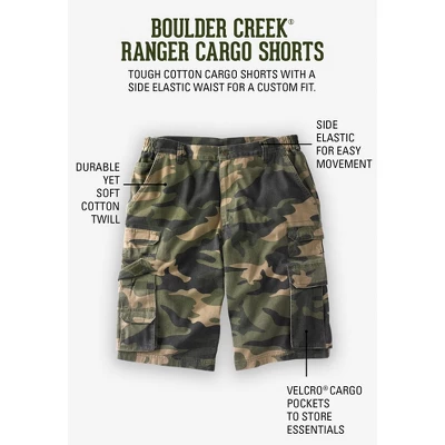 Our Boulder Creek® 12″ Side-Elastic Stacked Cargo Pocket Shorts have a pocket for everything and more! The cotton twill construction is durable and garment washed for extra softness. Double stacked cargo pockets and back pockets feature grommet details.
