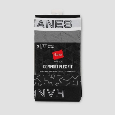 Hanes Men’s Cool Comfort Boxer Briefs are made with a lightweight, breathable mesh fabric and a Comfort Flex waistband for a flexible fit all day long. These men’s underwear are made with our tagless design, which means no scratchy, irritating back label. Hanes Cool Comfort fabric wicks moisture away from your skin, helping keep you dry and comfortable. These Hanes boxer briefs come in a convenient pack of 3 pairs.