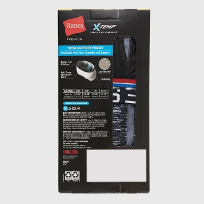 The ultimate in innovative, supportive and comfy mens underwear is here. HanesĀ® Total Support Pouch⢠Long Leg Boxer Briefs feature a patented breathable, mesh liner that separates and supports to help prevent chafing. With X-TempĀ® technology, odor protection and moisture-wicking quick dry fabric, youāll stay cool, fresh and dry all day long. Available in an assorted and convenient 3-pack.