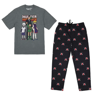 - CUSTOM DESIGN: An image of Gon Freecss, Killua, Kurapika, and Leorio gathered under the series title decorates the graphic tee in this sleep set while the stretch pants feature all over print of the anime’s logo.