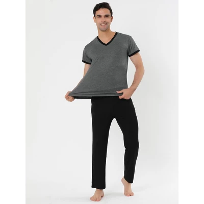 Lars Amadeus Men’s Cotton Short Sleeves V Neck Top Bottoms Lounge Sleep Pajamas Sets