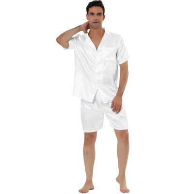 Try out this cute solid color satin pajama set that has shorts instead of full pants. The simple pajama set has a regular fitting top with short sleeves. The pants are straight cut and have a nice elastic waist for comfort. It will work well for hot weather and summers.Great choice for slumber parties, pajama nights or daily wear at home.