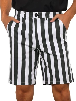 - CLASSIC DESIGN: Allover stripes design, flat front, comfortable chino dress shorts