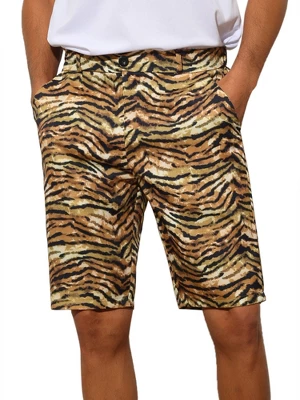 The casual animal printed shorts are classic, stylish, and personalized. These animal printed shorts are a chic and stylish addition to any wardrobe. Match shirts, plain tees, jackets, polo shirts and shoes to make a charming casual look. Perfect for various occasions such as street, beach, parties, prom, dates, daily wear, etc.