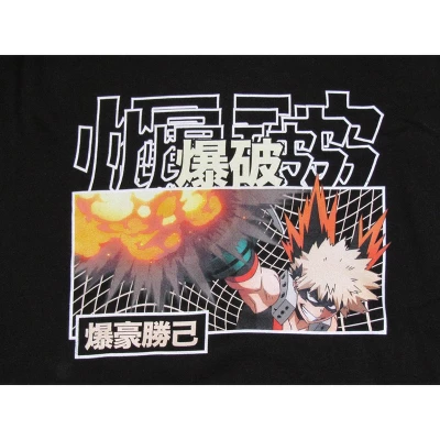 - CUSTOM DESIGN – The My Hero Academia anime cartoon men’s fan apparel features a bold graphic of Kacchan in his hero costume against a black background, professionally printed for long-lasting color and print quality.