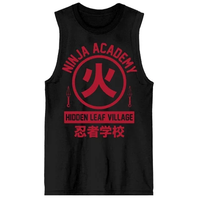 - CUSTOM DESIGN: The Hidden Leaf Village symbol decorate the front of this graphic tank while red letters above the image spell out, “Ninja Academy.” Fans of the Naruto Shippuden anime series will love this fun custom design.