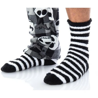 - SUPER-SOFT FLEECE PANTS AND COZY SOCKS – The pants feature an allover design of Jack’s heads and bats on a checkered pattern. The socks are of a cozy polyester/spandex fabric, thick and comfy with a black and white stripe pattern!