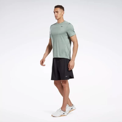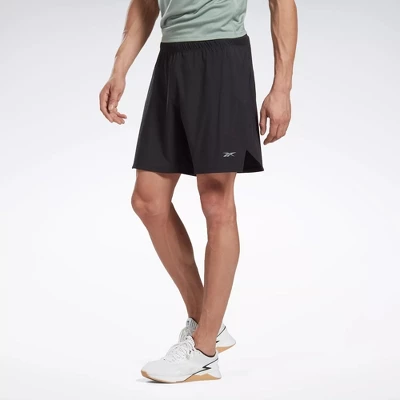 Push through your final rep, and do one more just because you can. These men’s Reebok training shorts are built to perform no matter the test. Speedwick fabric keeps you cool and dry from first bicep curl to last squat. The elastic waistband flexes as you move, and mesh at the back keeps air flowing as your workout heats up.