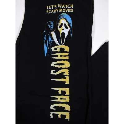- GRAPHIC DESIGN: Ghostface appears on the left leg of these men’s pants as yellow text above the scary figure reads, “Let’s watch a scary movie.” Ghostface’s name is printed below in sideways yellow letters.